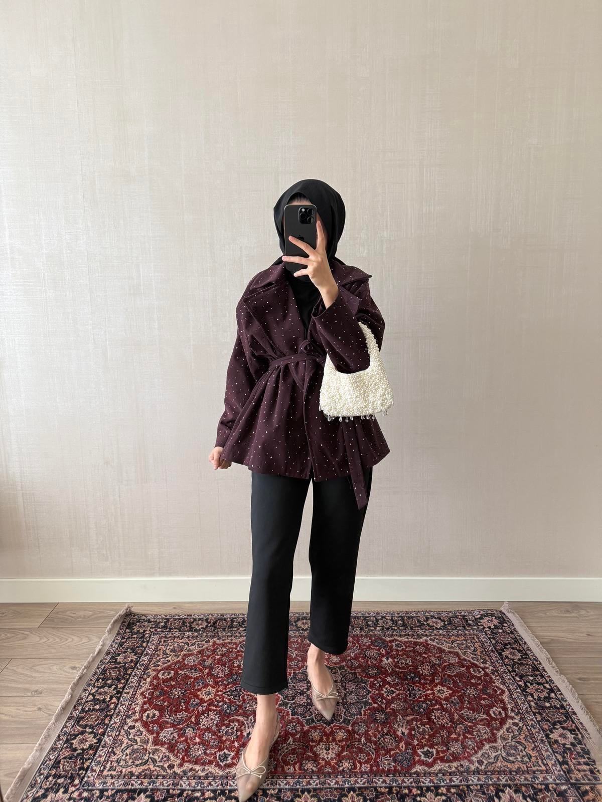 Taşlı Ceket - Bordo