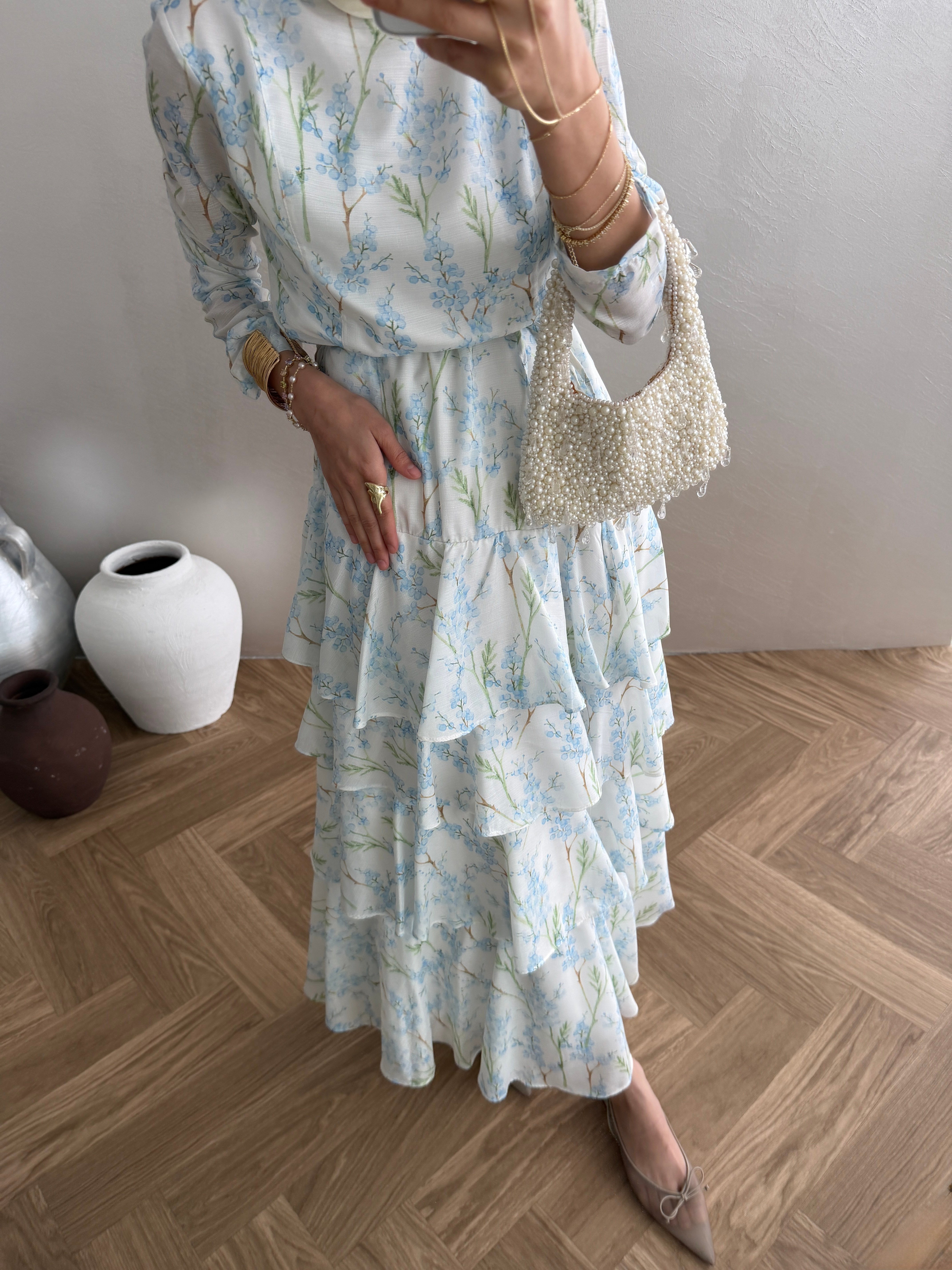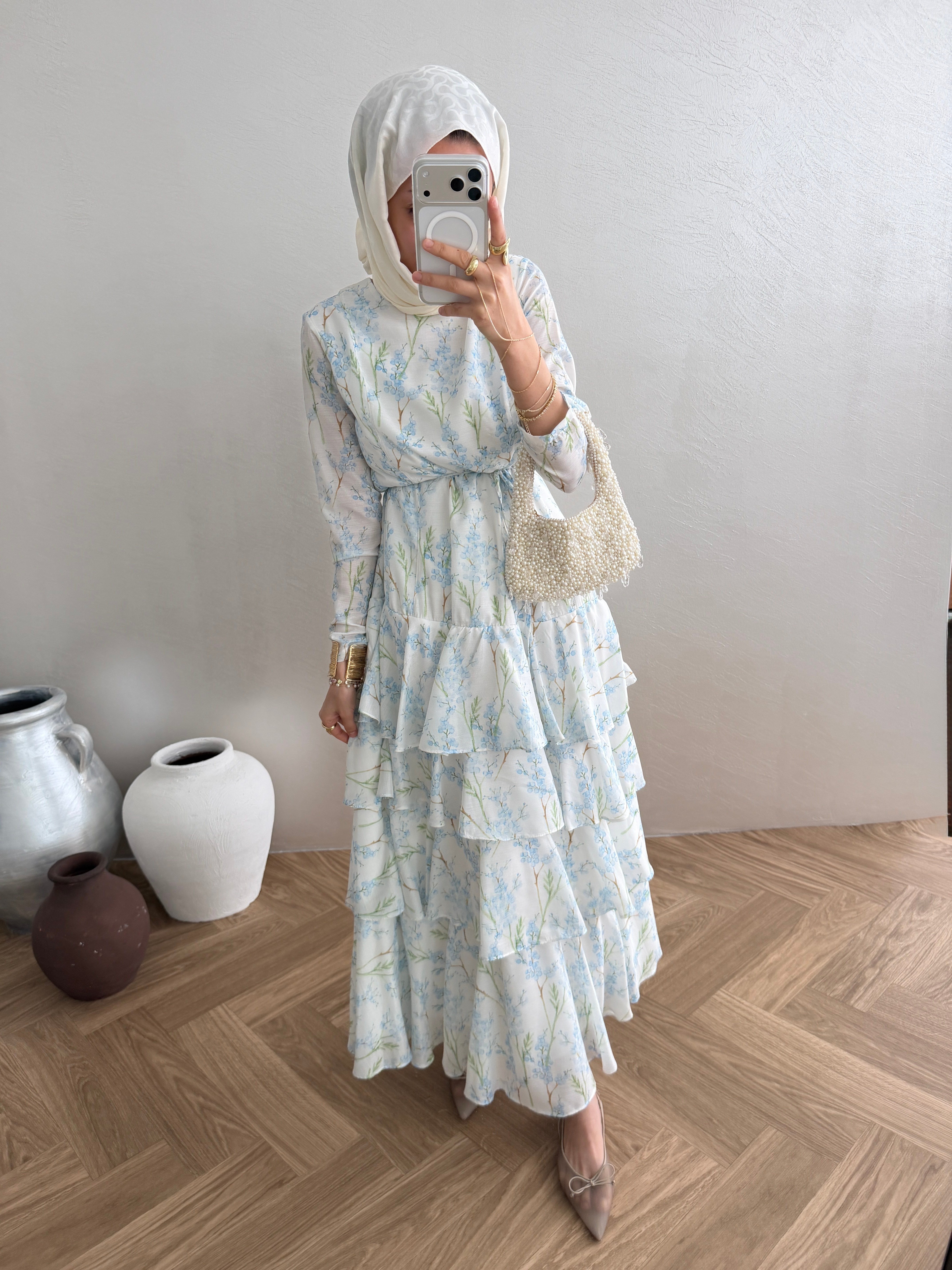 Çicek Desenli Elbise - Mavi