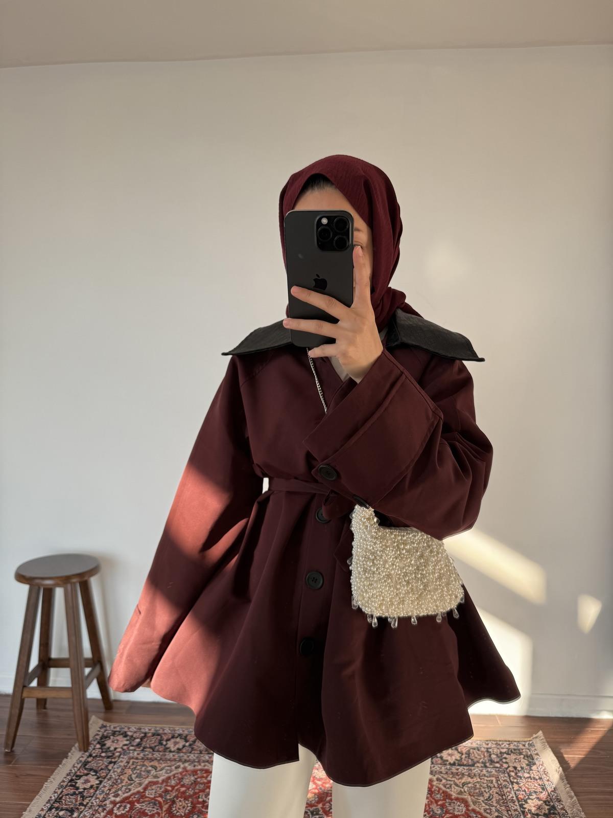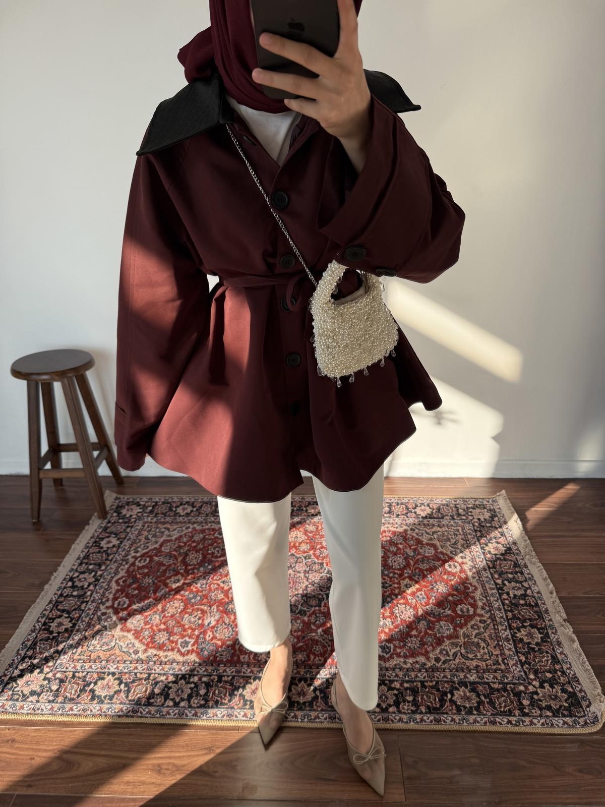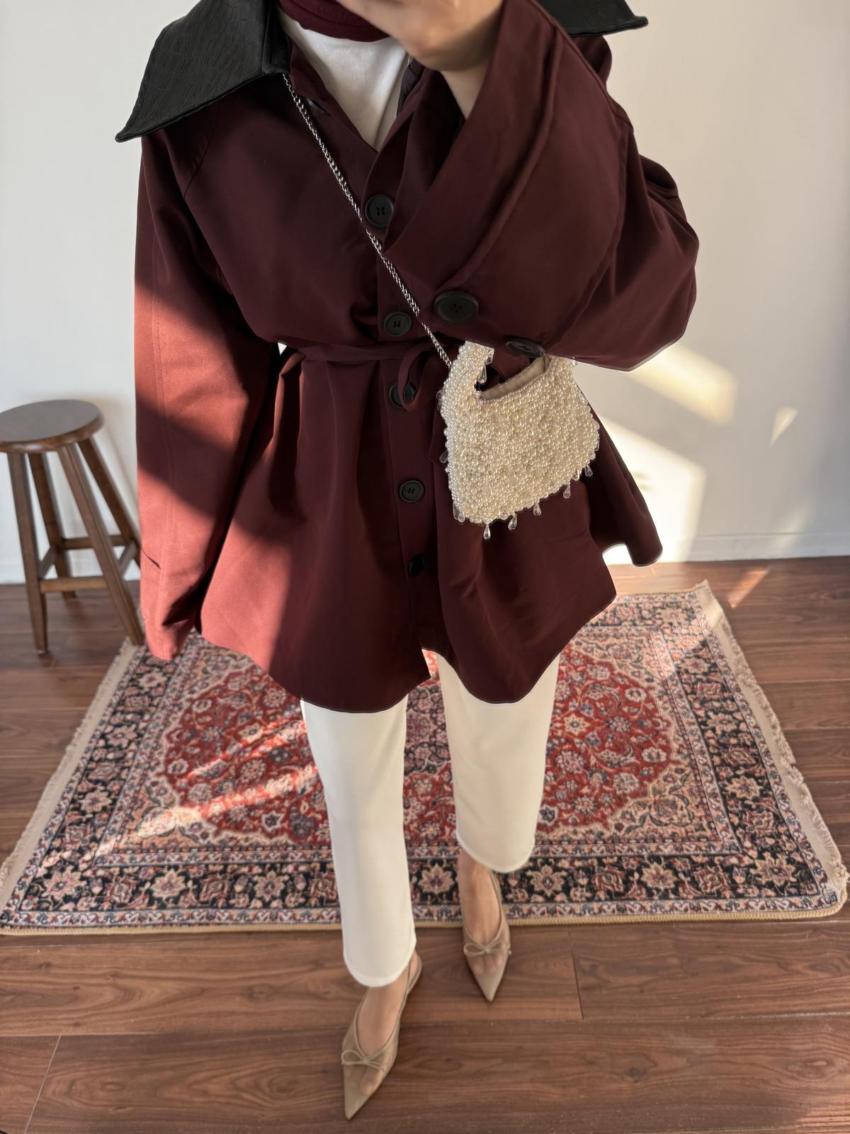 Yumuşak dokulu mevsimlik kumaşıyla hem ilkbahar hem sonbahar günlerinde ideal bir kullanım sağlar. Kuşak detayı vücut formunu zarifçe vurgularken, oversize kesim ise özgür bir şıklık yaratır.