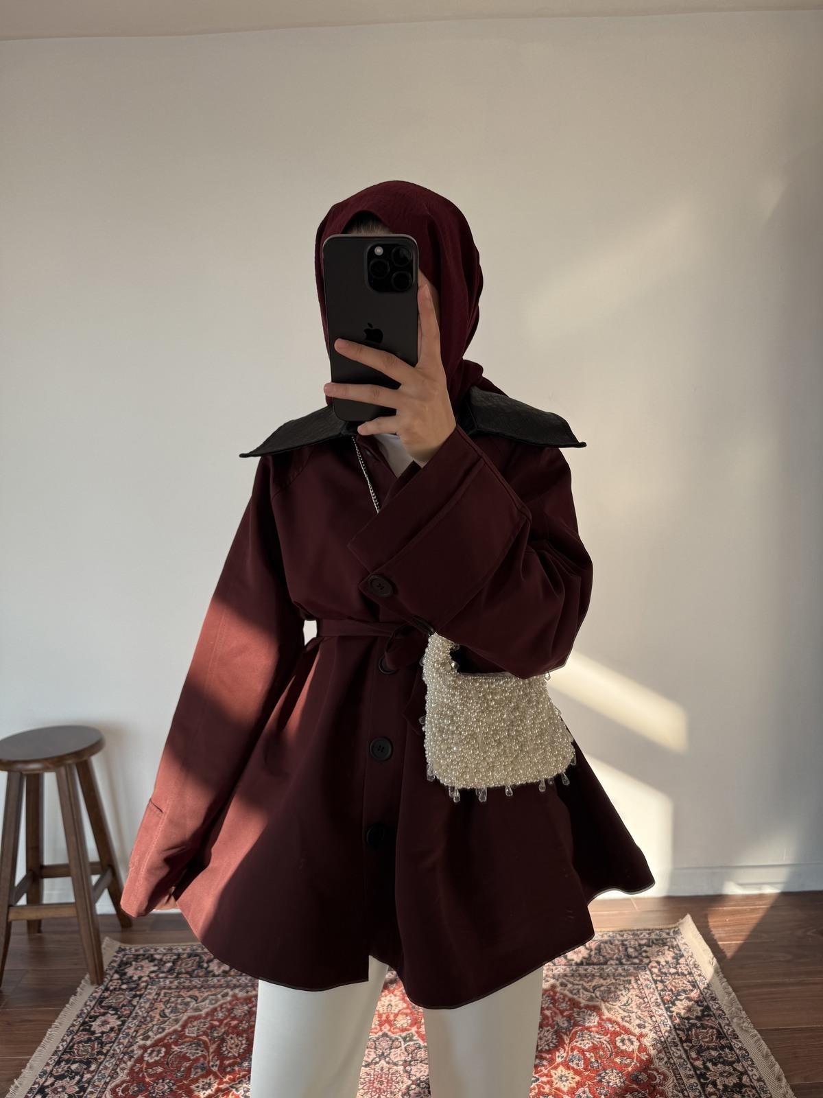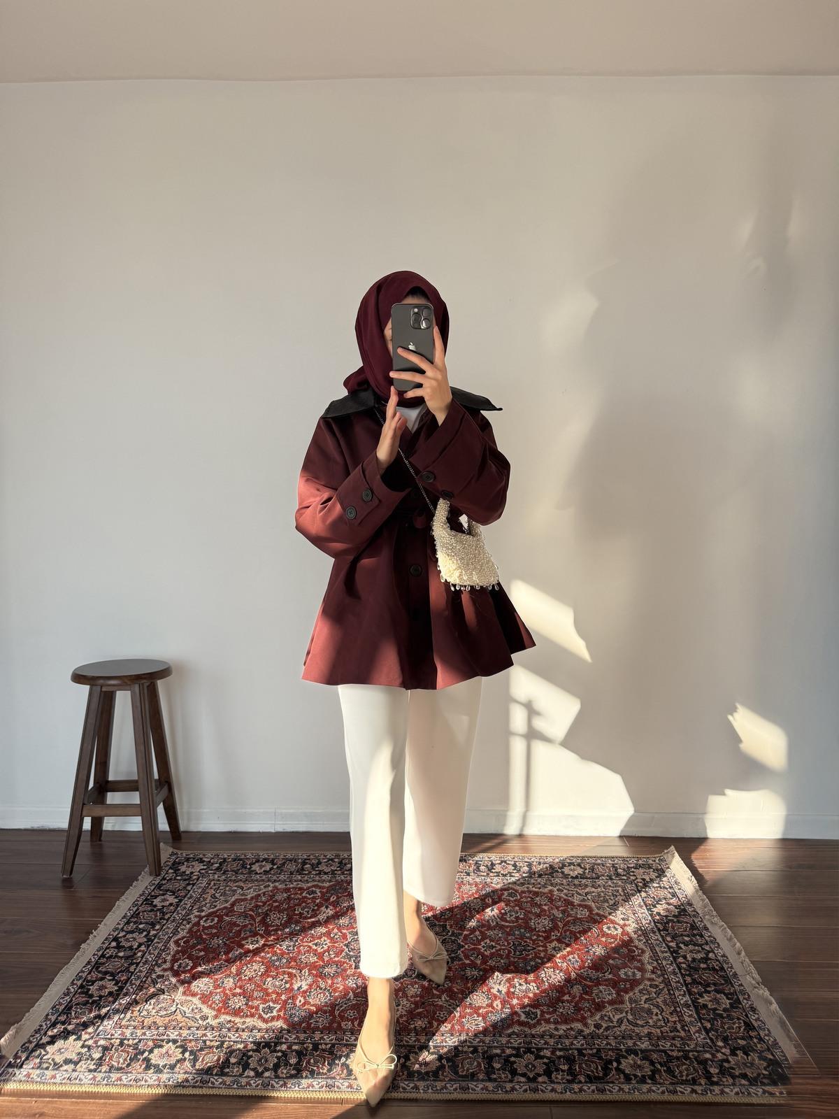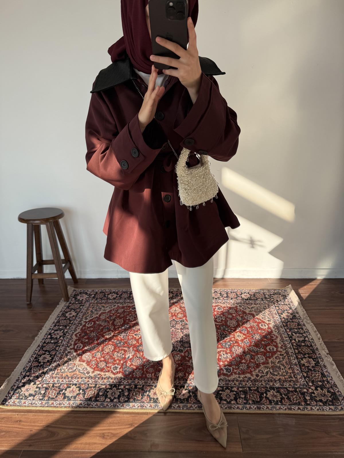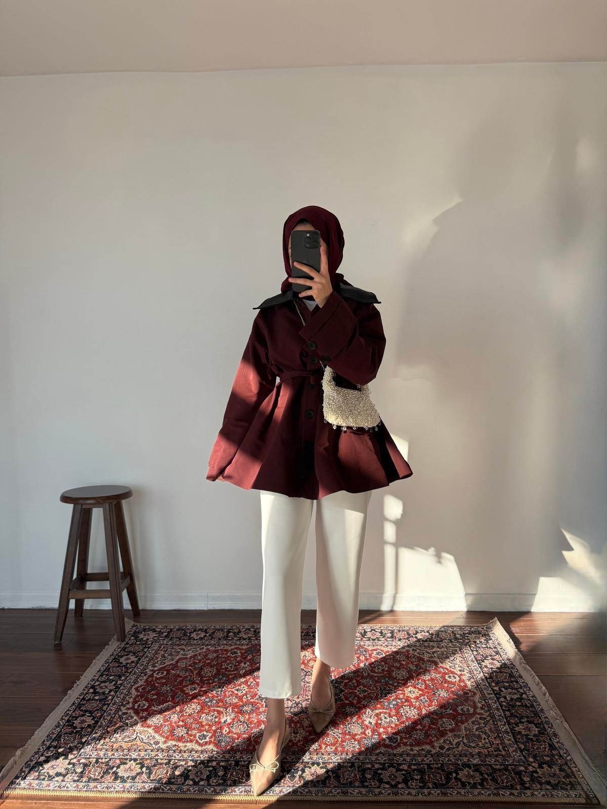 Yumuşak dokulu mevsimlik kumaşıyla hem ilkbahar hem sonbahar günlerinde ideal bir kullanım sağlar. Kuşak detayı vücut formunu zarifçe vurgularken, oversize kesim ise özgür bir şıklık yaratır.