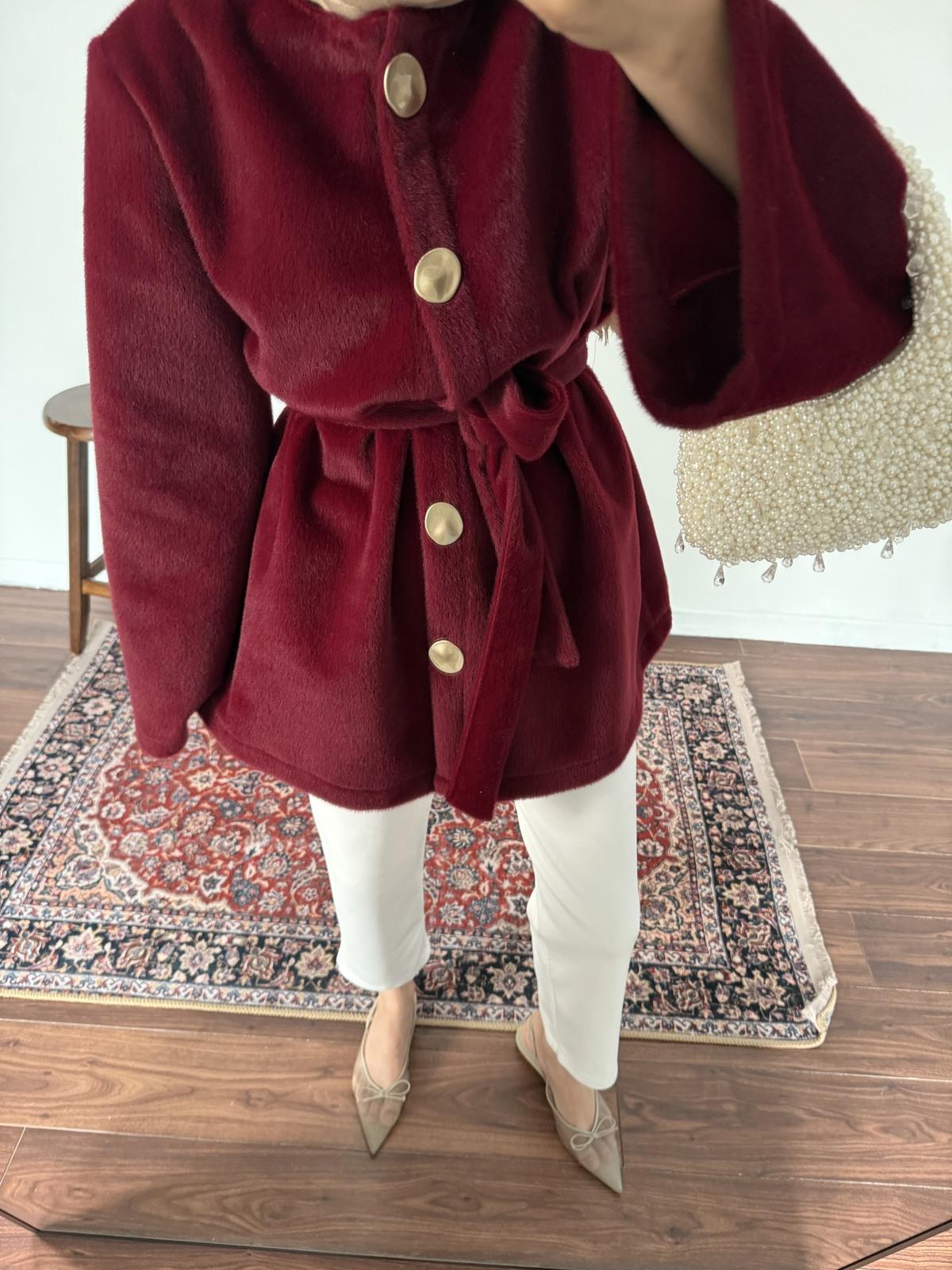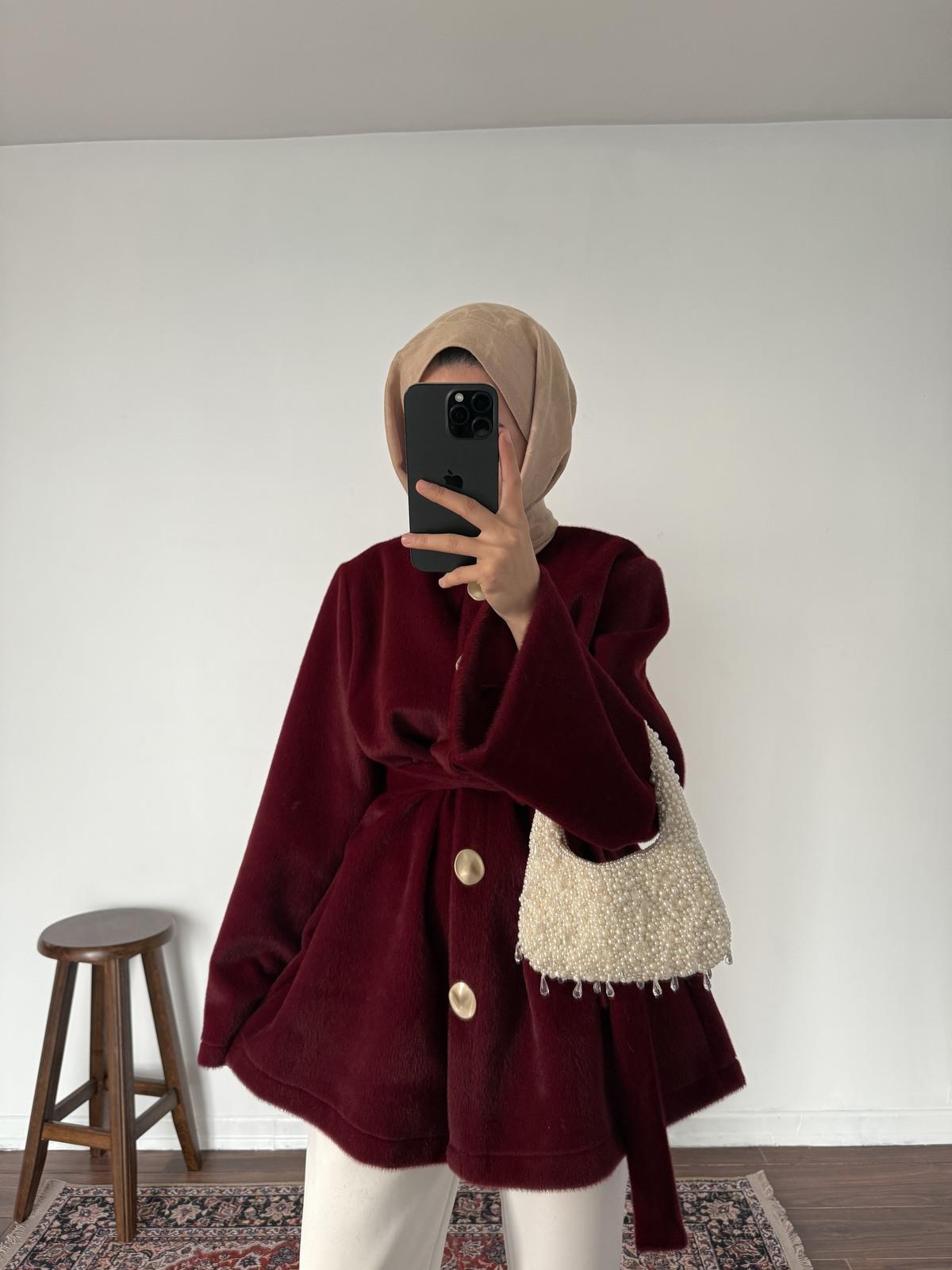 Düğmeli Goldfox Kaban - Bordo