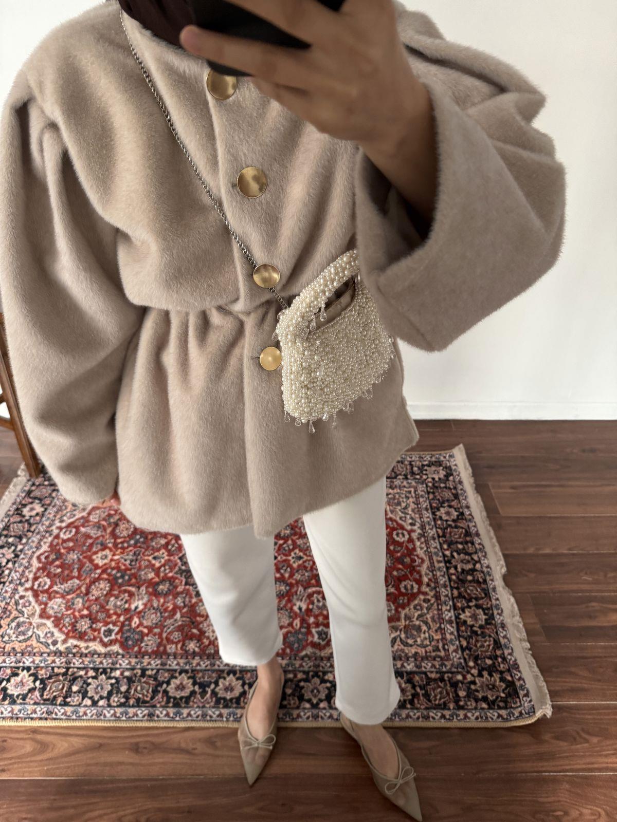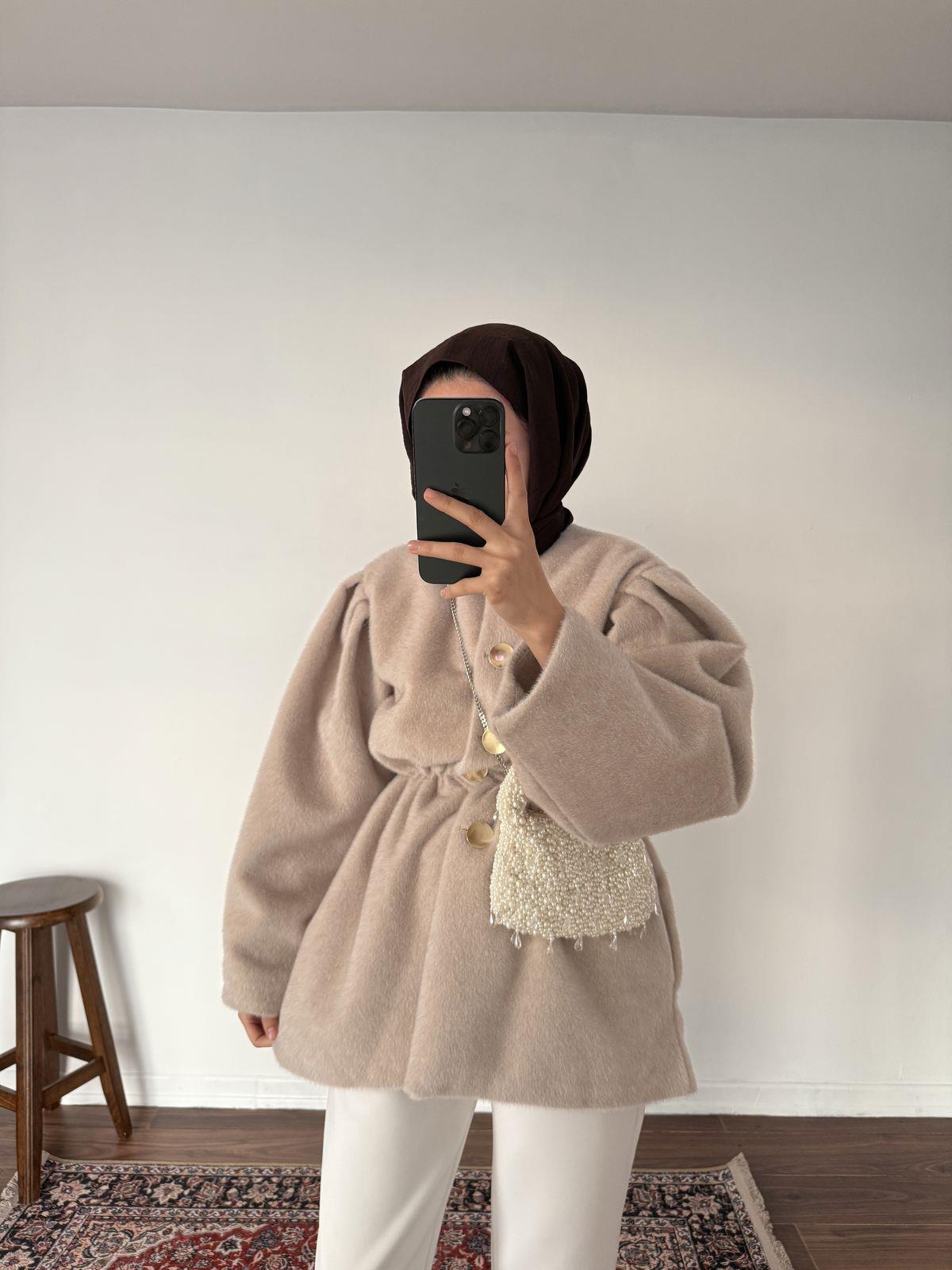 Kaşe Premium Düğmeli Kap - Bej