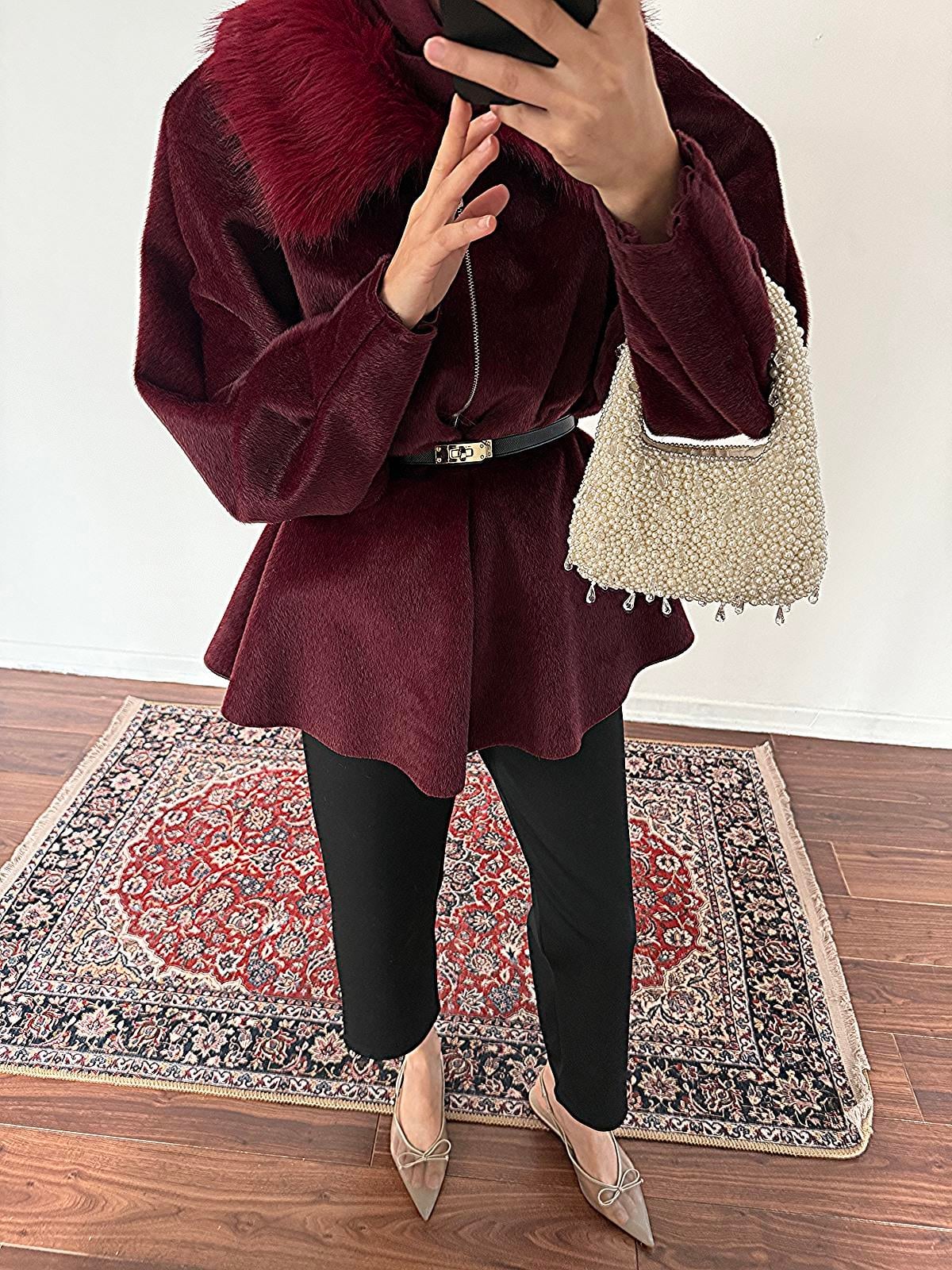 Kürk Yakalı Kap - Bordo