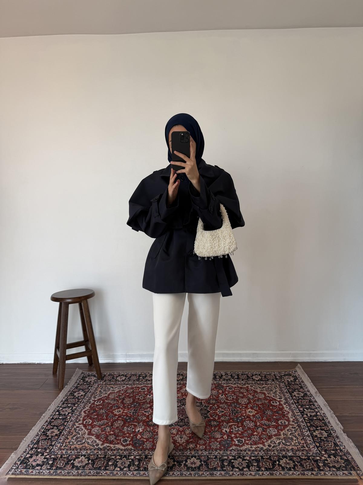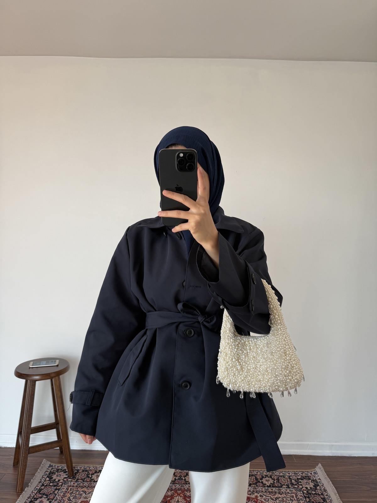 Yumuşak dokulu mevsimlik kumaşıyla hem ilkbahar hem sonbahar günlerinde ideal bir kullanım sağlar. Kuşak detayı vücut formunu zarifçe vurgularken, oversize kesim ise özgür bir şıklık yaratır.
