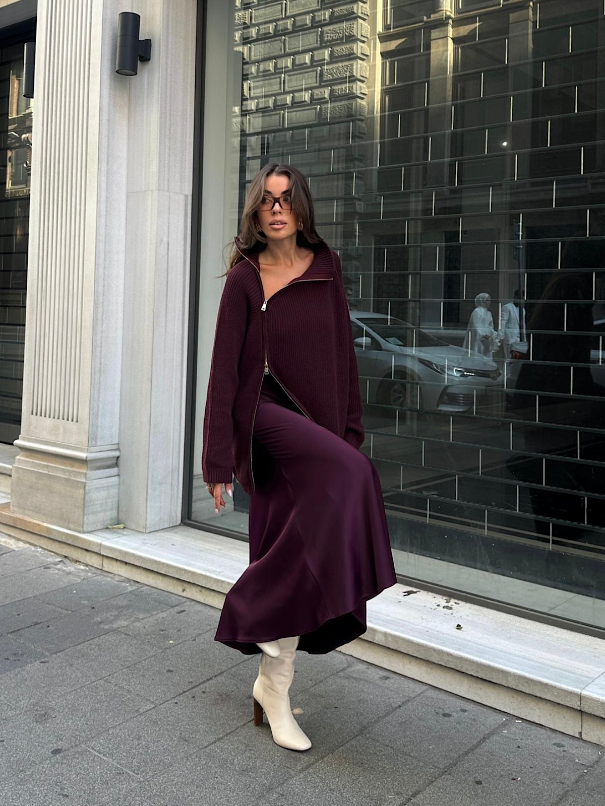 Sizleri en çok sevindiren Çelik’e örme kazaklarımız, saten eteklerimizle bir araya gelince döken kombinler ortaya çıkıyor.”