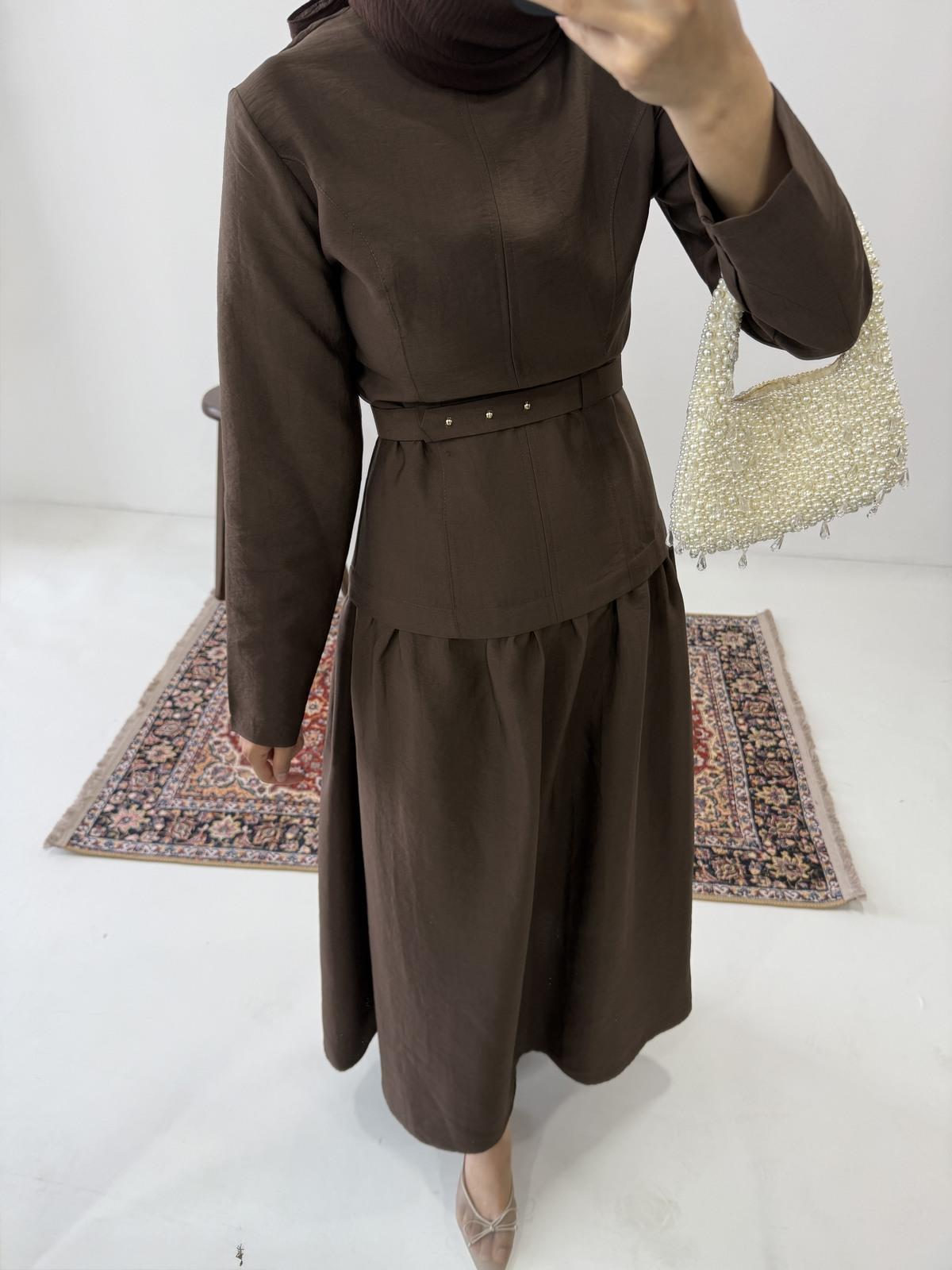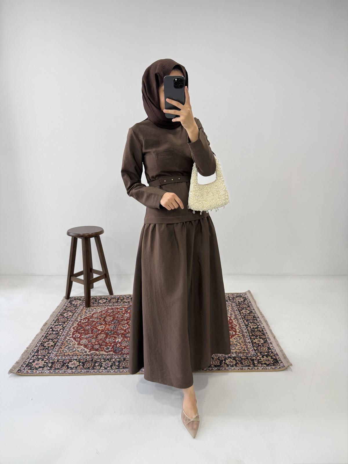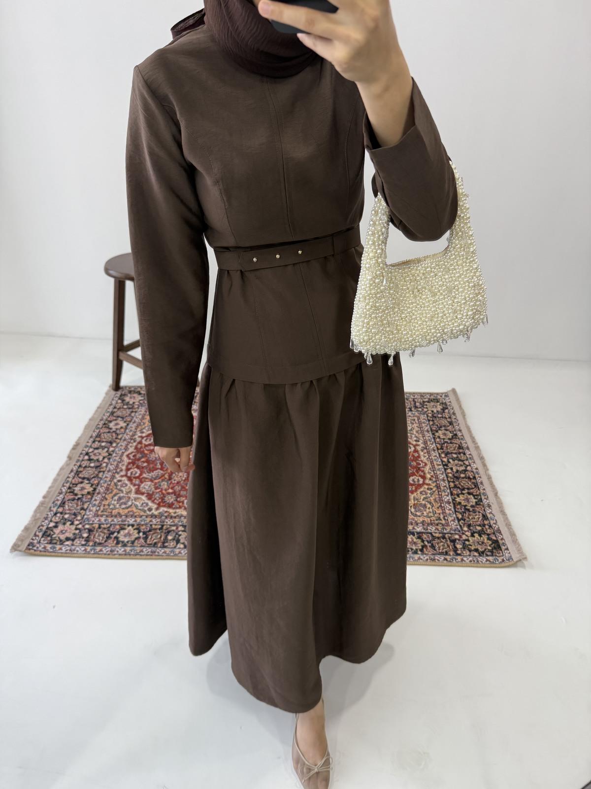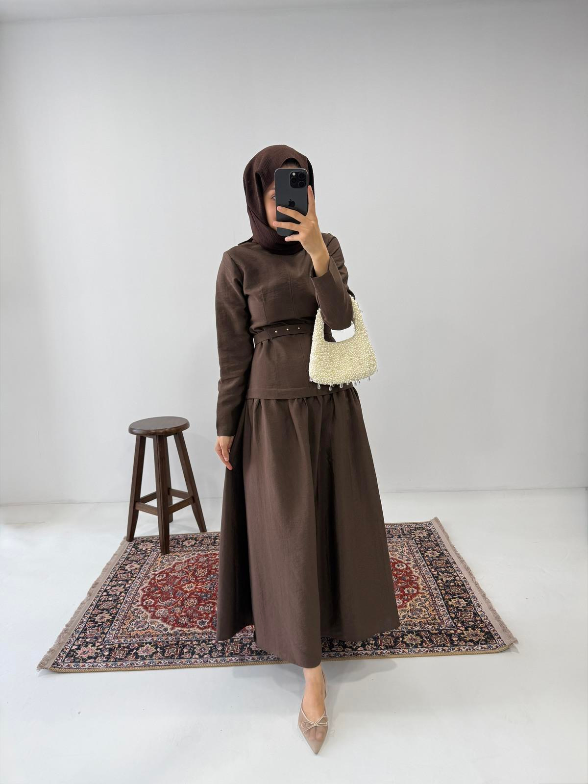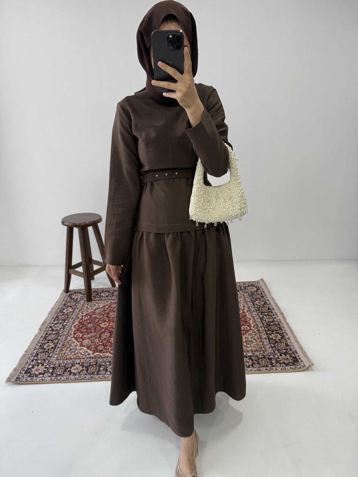 Tasarım Kemerli Elbise - Kahve (MO10051)