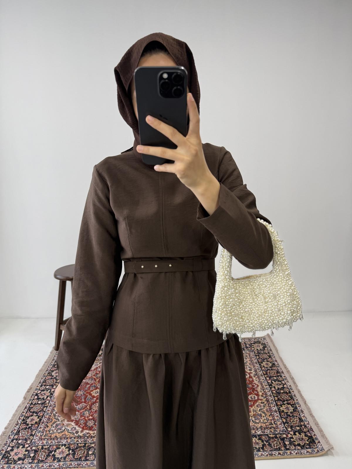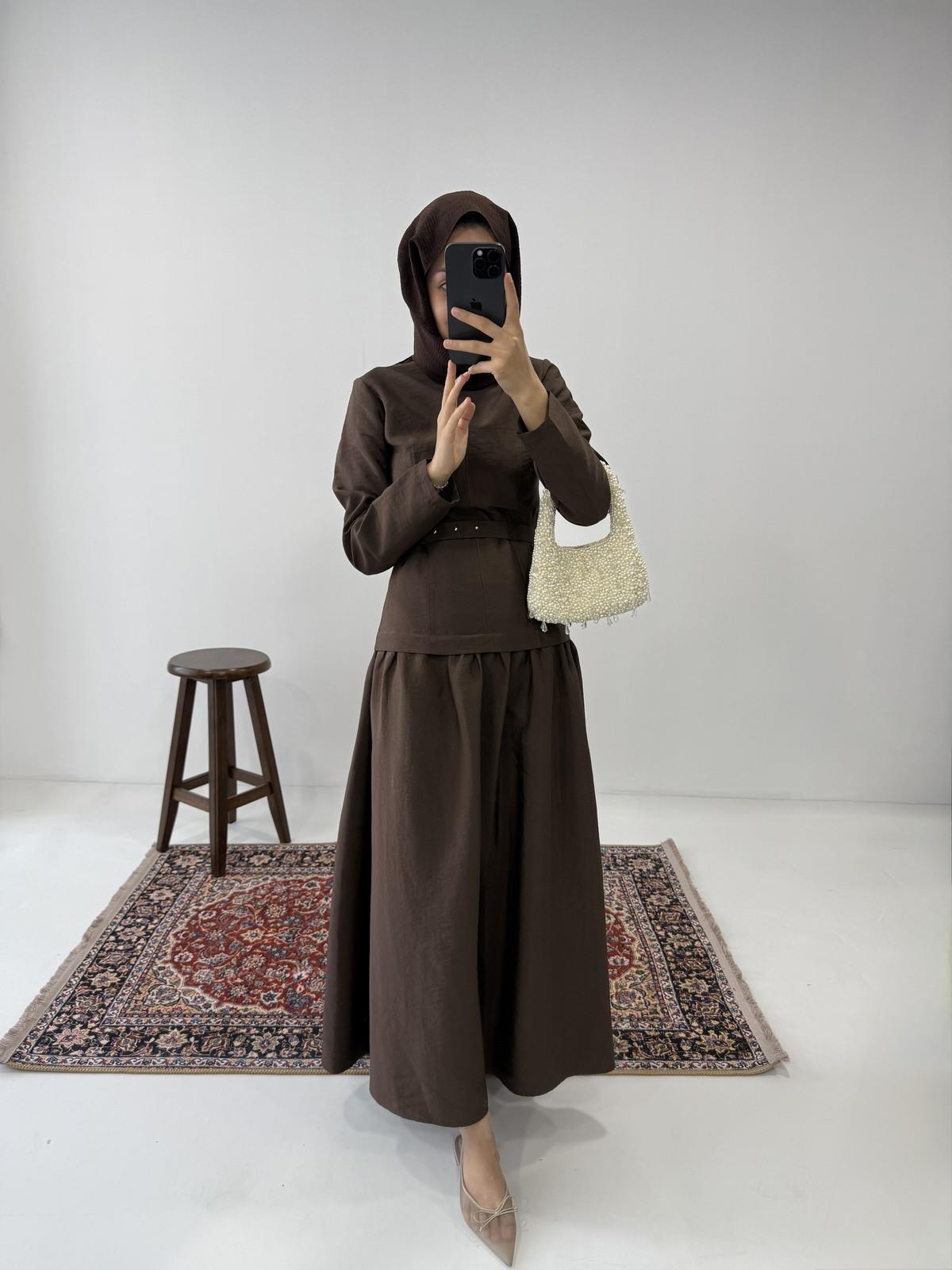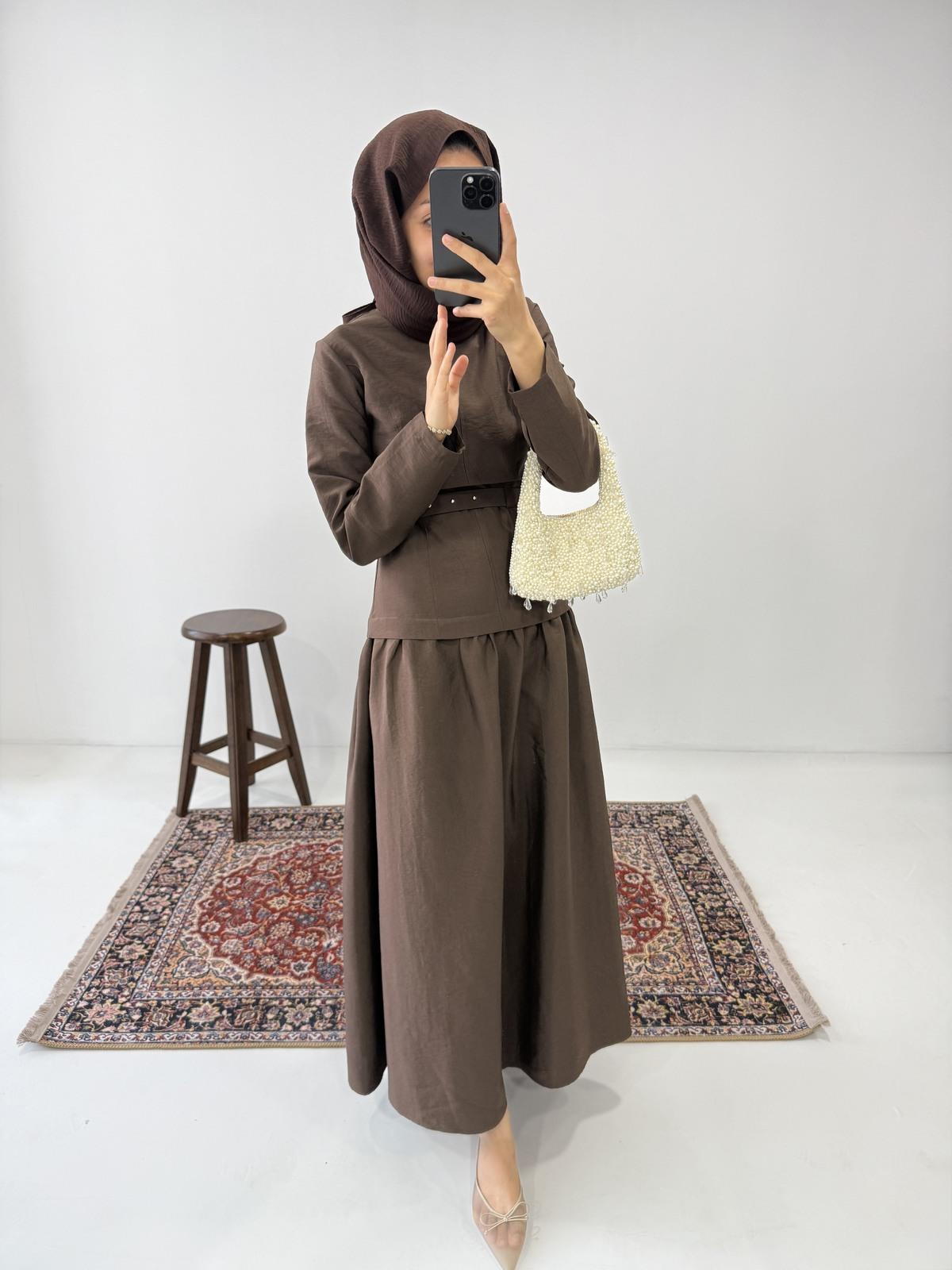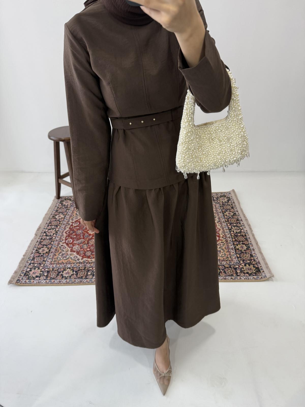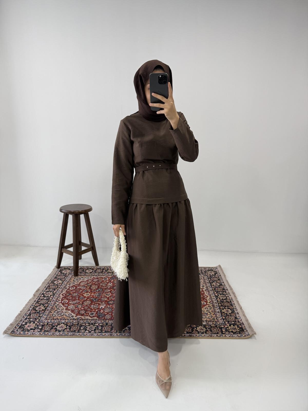 Tasarım Kemerli Elbise - Kahve (MO10051)