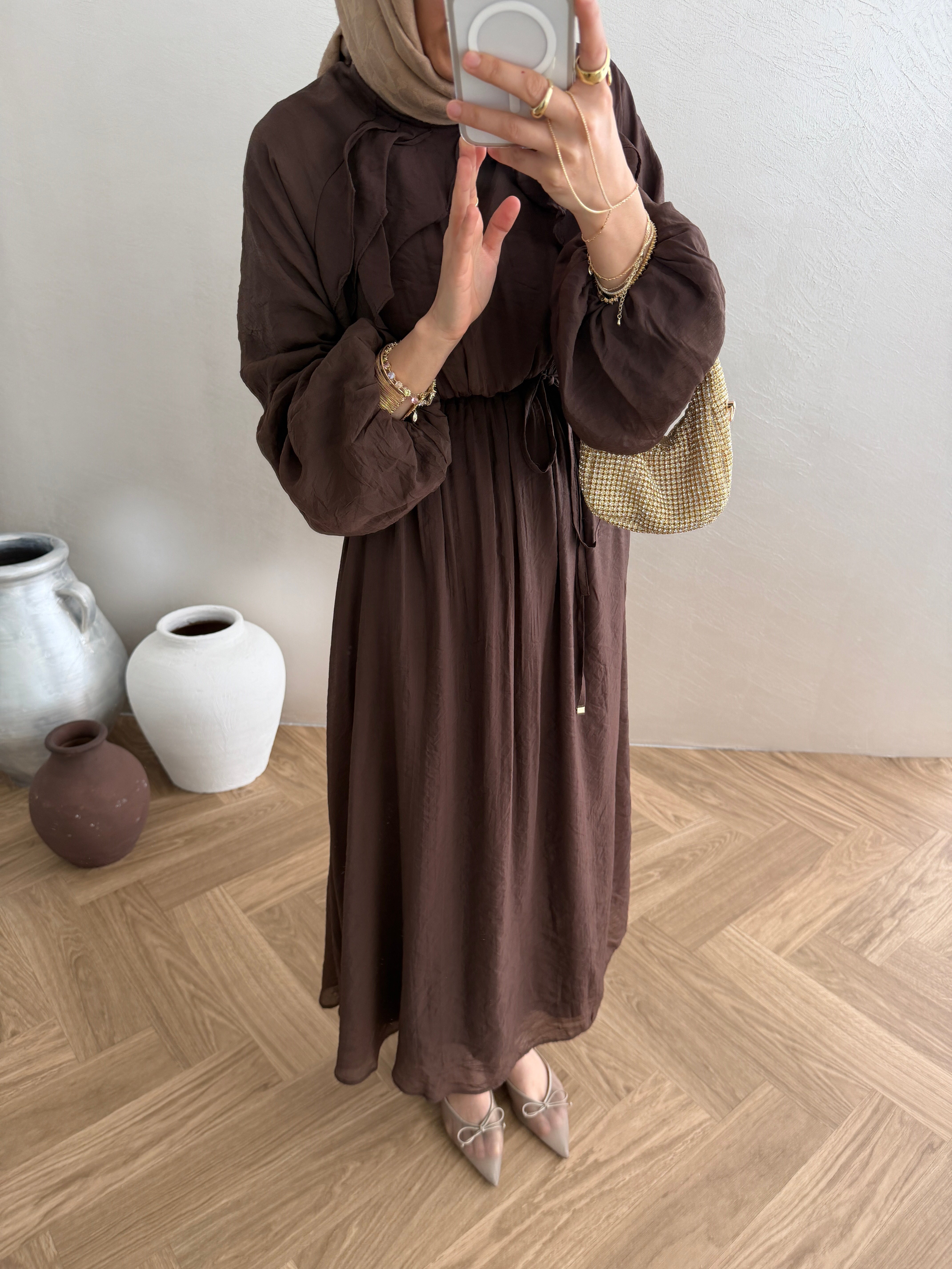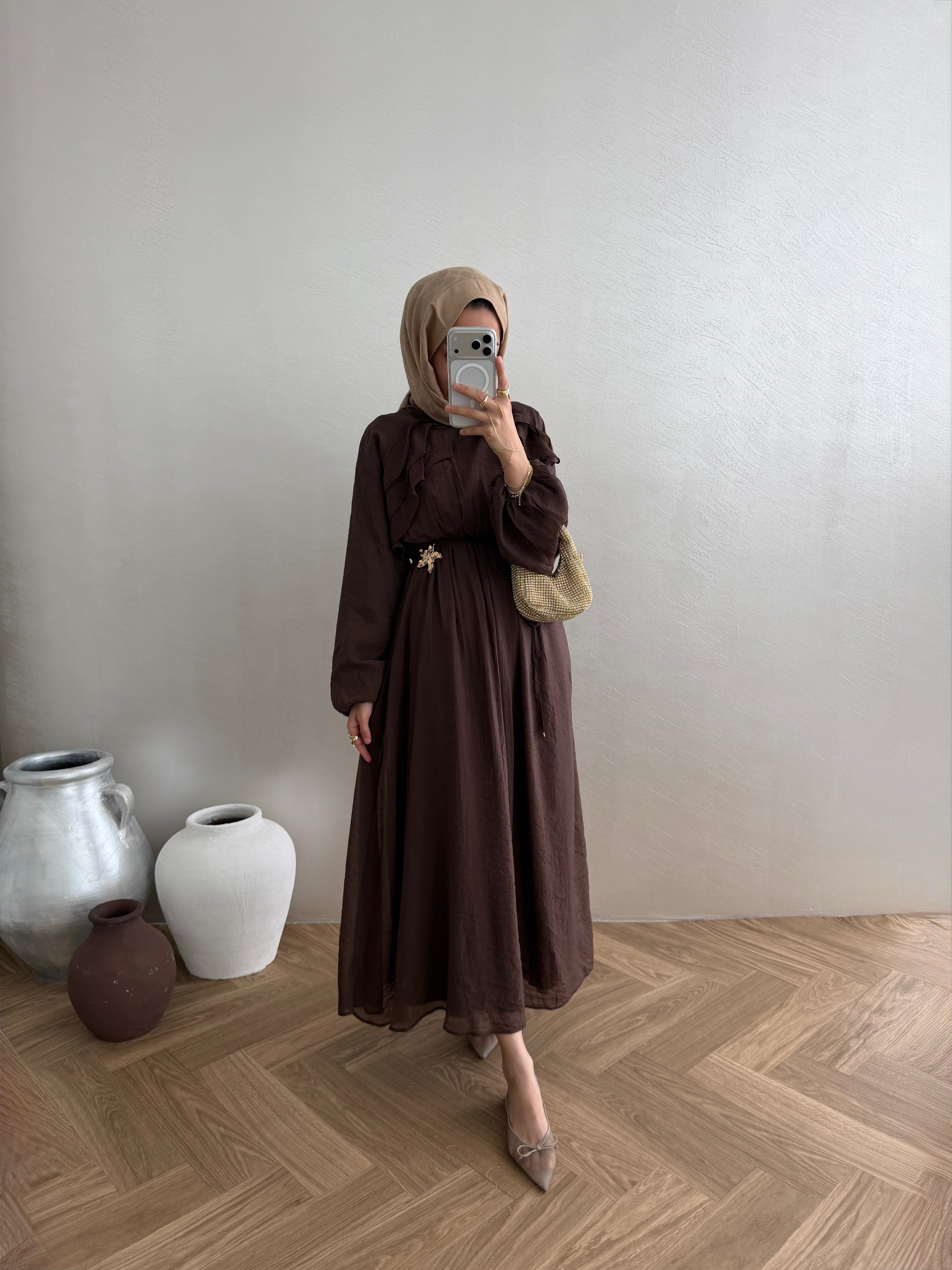 Vual kumaşın efil efil dokusu, Borş Detayının zarif dokunuşuyla buluşuyor.