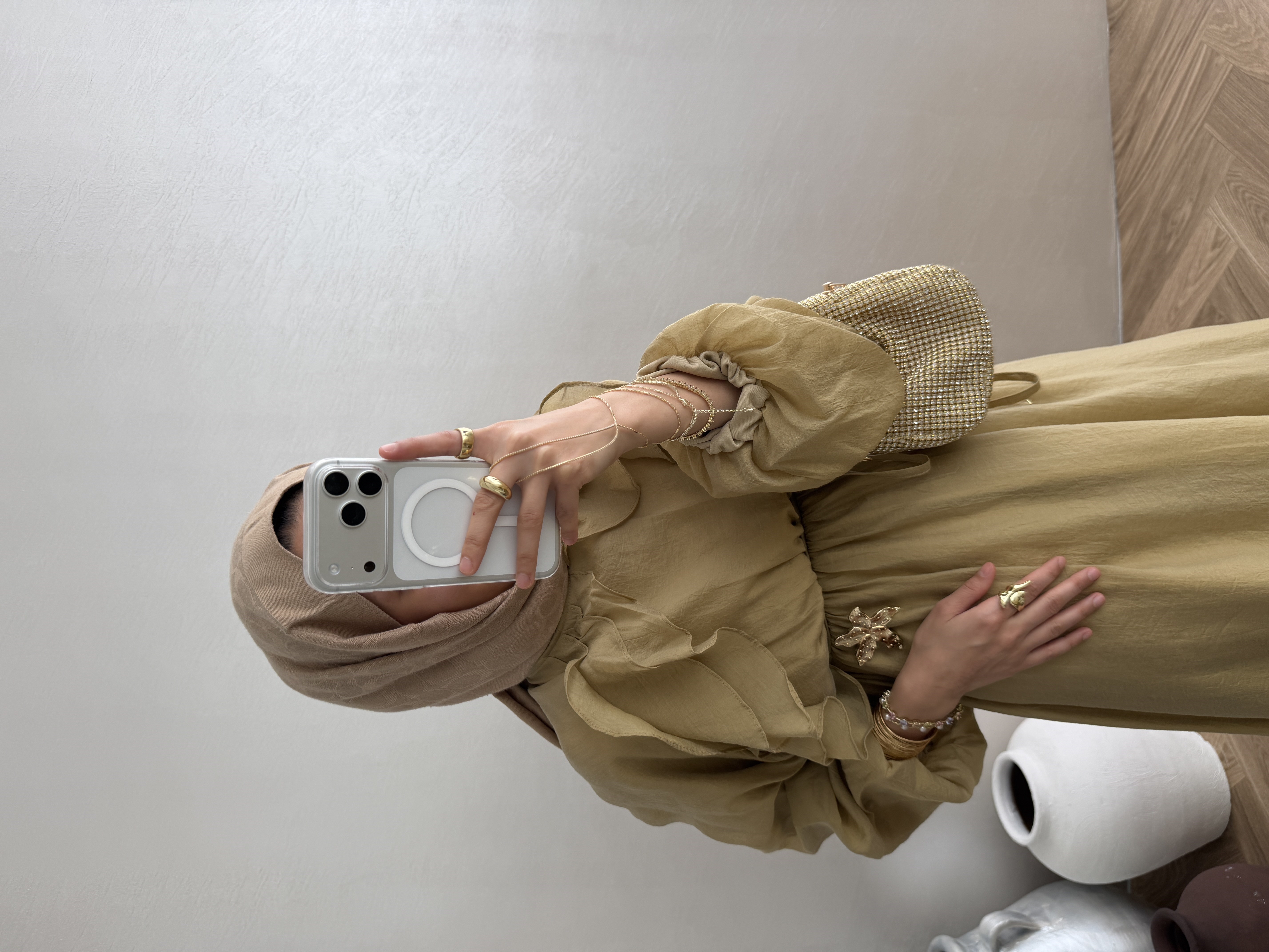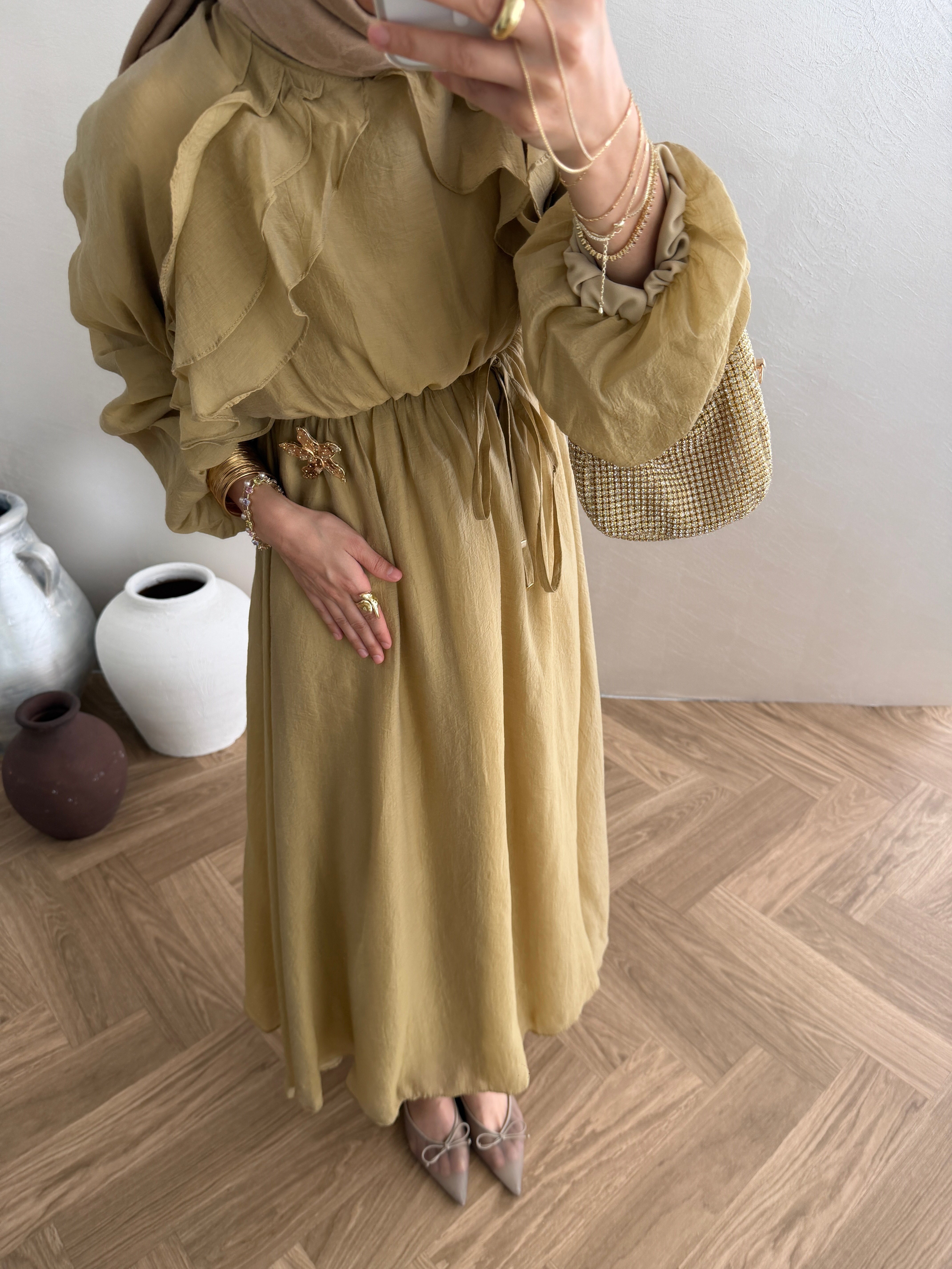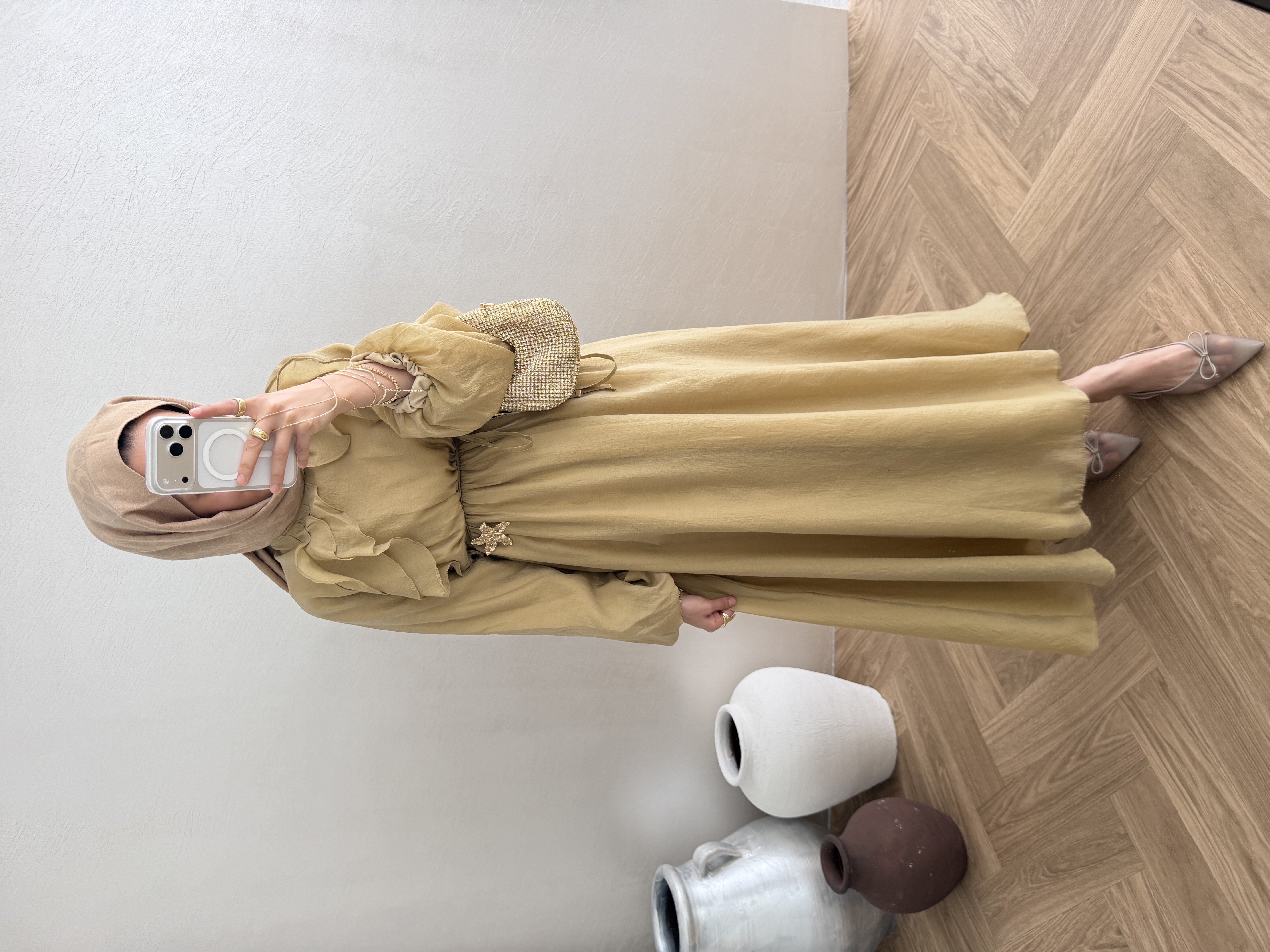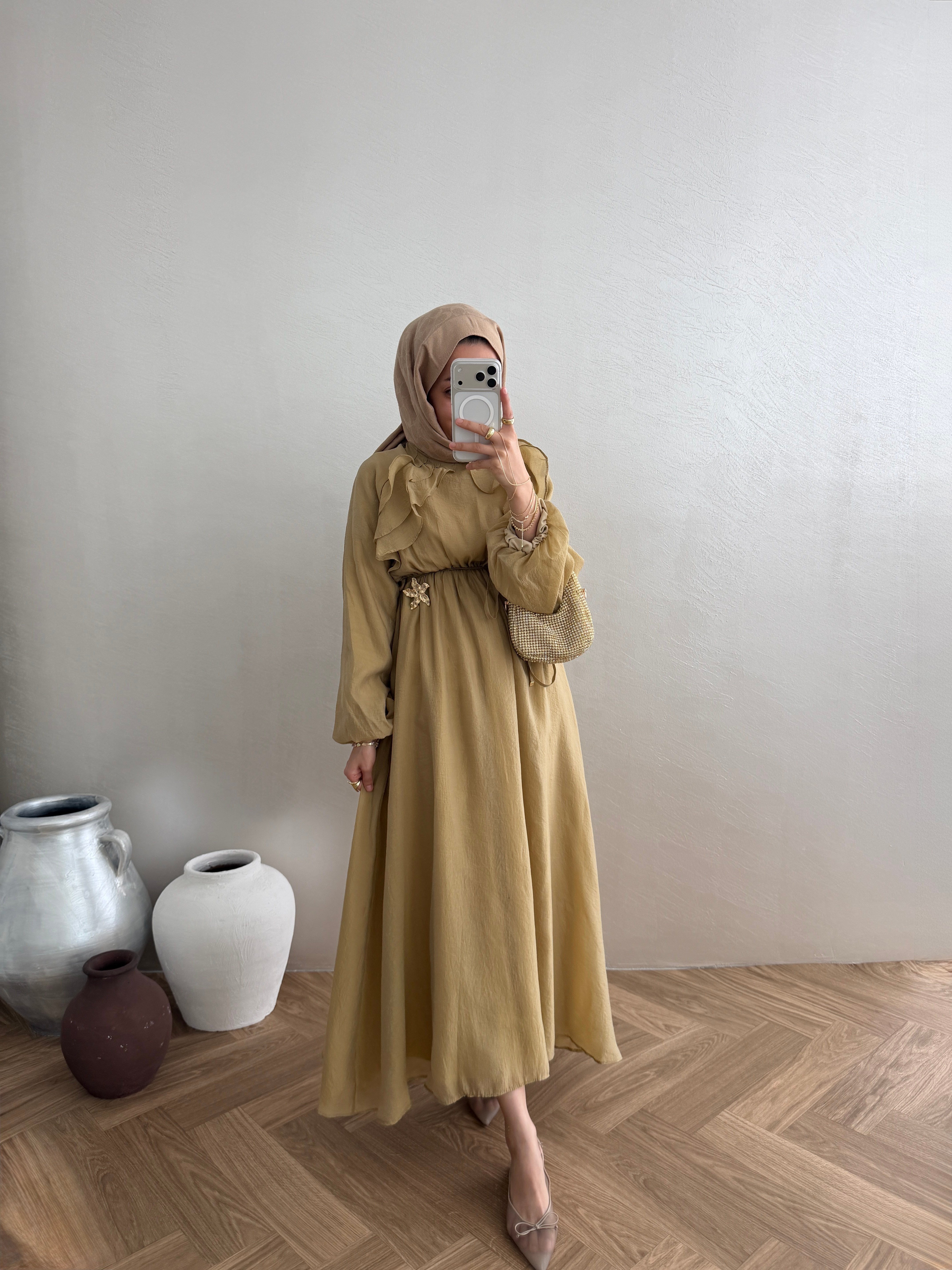 Vual kumaşın efil efil dokusu, Borş Detayının zarif dokunuşuyla buluşuyor.